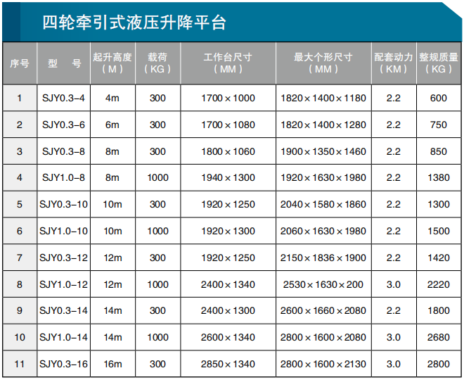 四轮牵引式液压升降平台